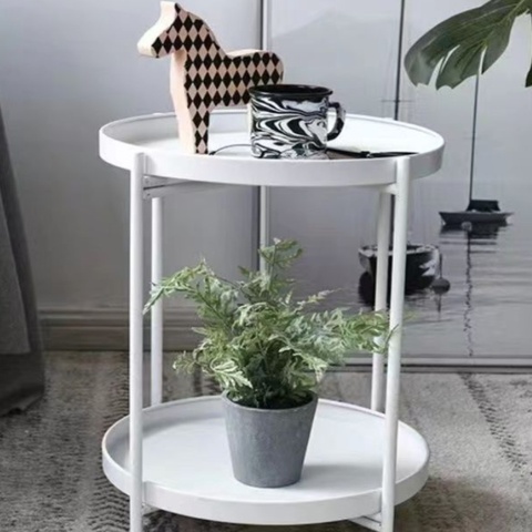 Mini mesa de centro de doble capa de lujo nórdico Kinno, apartamento, sala de estar, sofá plegable de hierro simple, mesita de noche lateral, mesa pequeña